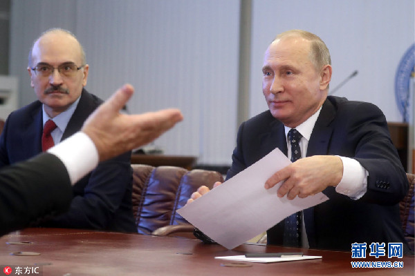 當(dāng)?shù)貢r(shí)間27日,俄羅斯莫斯科,俄羅斯總統(tǒng)普京親自向俄中央選舉委員會(huì)遞交參加2018年總統(tǒng)大選的文件。俄羅斯將于2018年3月18日舉行總統(tǒng)大選。