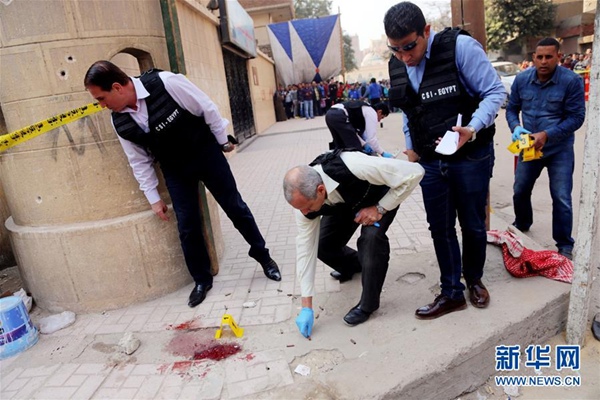 12月29日,警察在埃及開羅教堂襲擊事件現(xiàn)場調(diào)查。 新華社發(fā)(艾哈邁德·戈馬攝)