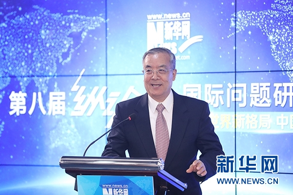蘇格在新華網(wǎng)第八屆“縱論天下”國際問題研討會(huì)發(fā)表演講。新華網(wǎng)發(fā) 郭小天攝