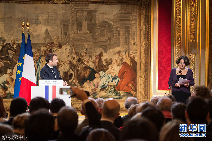 法國(guó)總統(tǒng)馬克龍向記者團(tuán)送上新年祝福