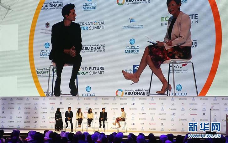 1月15日,在阿聯(lián)酋阿布扎比舉行的2018世界未來能源峰會(huì)開幕式現(xiàn)場(chǎng),五名來自不同國(guó)家和地區(qū)的青年代表就可持續(xù)發(fā)展等議題進(jìn)行討論。 新華社記者蘇小坡 攝