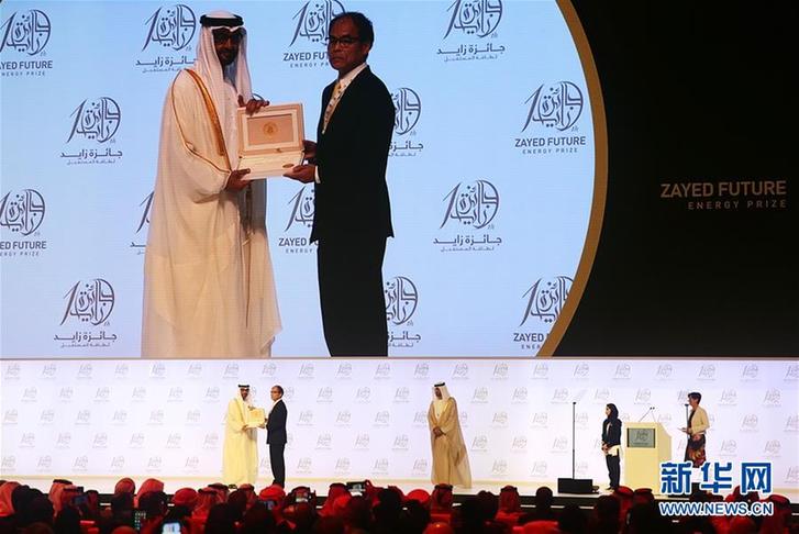 出席開幕式的阿聯(lián)酋阿布扎比王儲(chǔ)穆罕默德·本·扎耶德·阿勒納哈揚(yáng)為“扎耶德未來能源獎(jiǎng)”各獎(jiǎng)項(xiàng)得主頒獎(jiǎng),其中終身成就獎(jiǎng)授予了諾貝爾物理學(xué)獎(jiǎng)得主、美籍日裔科學(xué)家中村修二。中國(guó)深圳亞迪學(xué)校以新能源清掃船創(chuàng)意入圍亞洲區(qū)高中獎(jiǎng)?lì)悇e,但該獎(jiǎng)項(xiàng)最終由巴林的一所中學(xué)摘得。