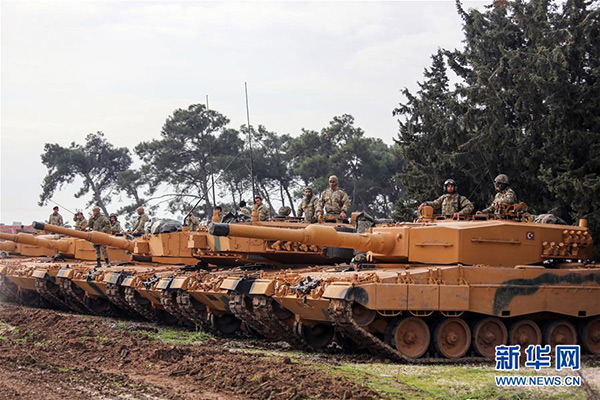 1月21日,在土耳其哈塔伊省與敘利亞邊境地區,土軍地面部隊準備開往敘利亞北部阿夫林。土耳其總理耶爾德勒姆21日宣布,土耳其軍隊當天上午已進入敘利亞邊境,展開對敘北部阿夫林的地面軍事行動。 新華社發