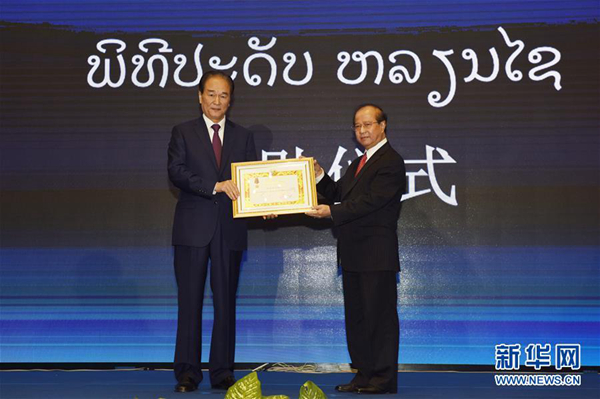 2月2日,在老撾首都萬象舉行的首屆“一帶一路”老-中合作論壇開幕式上,老撾政府向新華社及新華社社長蔡名照分別授予自由勛章,以表彰新華社長期以來為加強老中合作關系以及為老撾國家通訊社發(fā)展所作的積極貢獻。首屆“一帶一路”老-中合作論壇2日在老撾首都萬象開幕。論壇圍繞中共中央總書記、國家主席習近平去年11月對老撾進行國事訪問達成的各項成果,探討“一帶一路”倡議與老撾國家發(fā)展戰(zhàn)略對接,共商中老發(fā)展合作大計。新華社記者 秦晴 攝