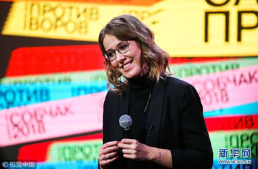 當地時間2月3日,俄羅斯圣彼得堡,俄羅斯電視節目主持人、總統候選人克謝尼婭·索布恰克會見支持者。(圖片來源:視覺中國)