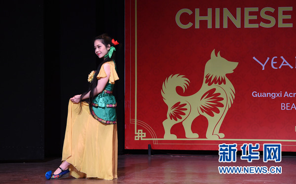 2月9日,在印度首都新德里,2018“歡樂春節”活動演出現場,中國演員在表演舞蹈。新華網發(張迺杰攝)
