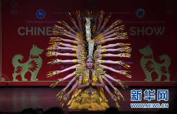 2月9日,在印度首都新德里,2018“歡樂春節”活動演出現場,中國演員在表演舞蹈。新華網發(張迺杰攝)