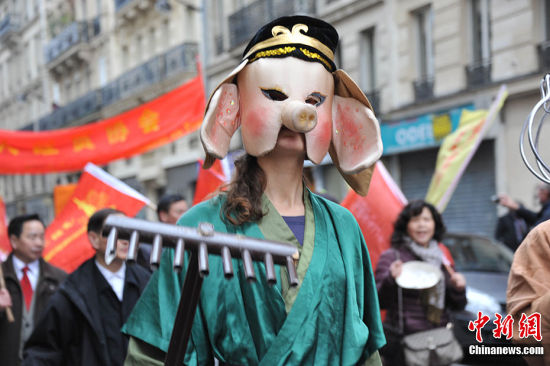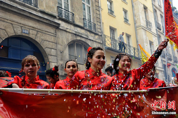 一群法國姑娘穿著唐裝,興高采烈的參加春節游行,喜感滿滿。