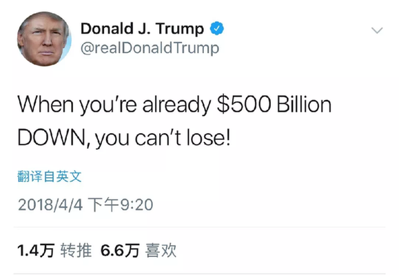 昨天,特朗普發(fā)了他“貿(mào)易戰(zhàn)”之后的首條推特……