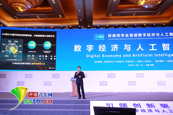 5月12日,歐美同學會首屆數字經濟與人工智能大會“數字經濟與人工智能現狀與趨勢”論壇上,華為5G產品線副總裁杜葉青發表演講。中國青年網記者 馬珊 攝