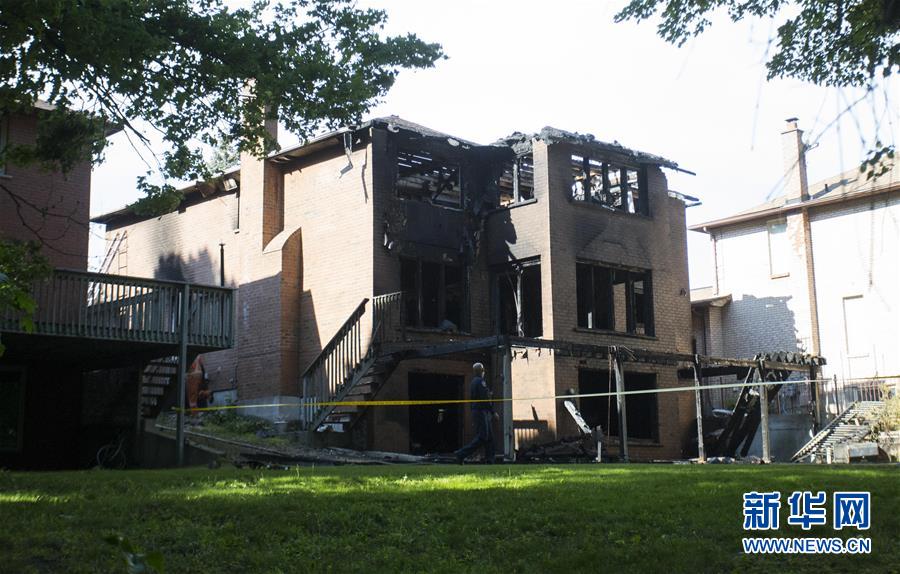 5月30日,在加拿大多倫多,警方在失火房屋外拉起警戒線并展開(kāi)調(diào)查。新華社發(fā)(鄒崢 攝)