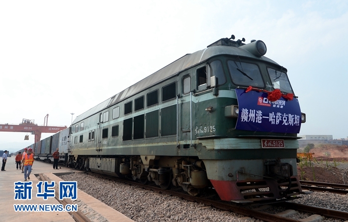 為世界和平發展注入強勁正能量——記中國擔任上海合作組織輪值主席國一年間在江西省贛州市南康區贛州港,“贛州港至哈薩克斯坦”中歐班列等待發車(2017年7月27日攝)。新華社記者 彭昭之 攝