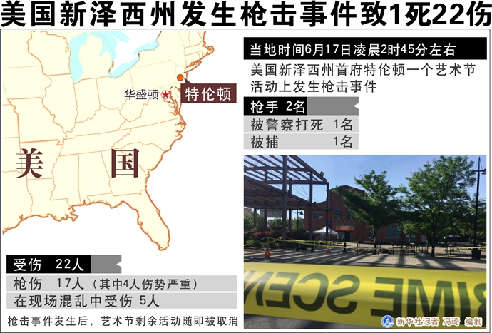 新華社華盛頓6月17日電(記者劉陽 孫丁)美國新澤西州首府特倫頓17日凌晨發生槍擊事件,一名槍手被打死,另有22人受傷。