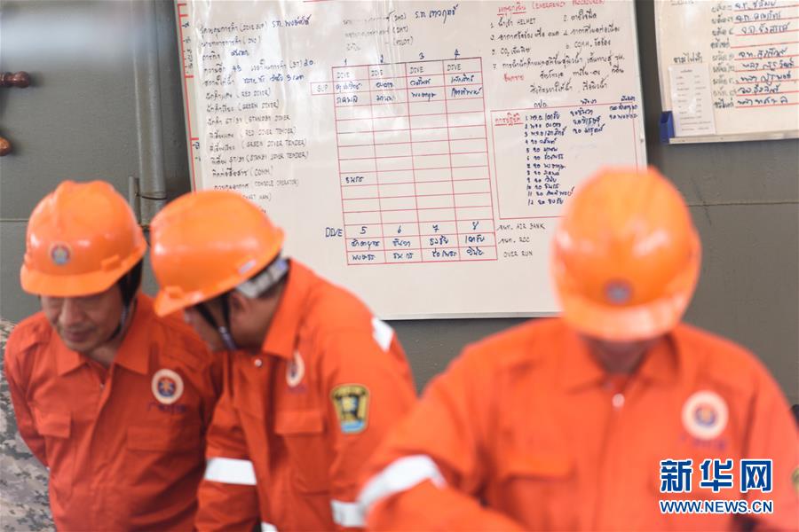 7月8日,在泰國普吉,中國交通運(yùn)輸部廣州打撈局救援隊(duì)成員參與救援。