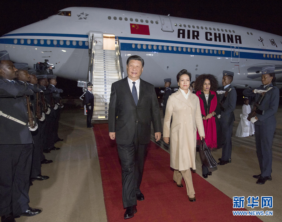 7月23日,國家主席習近平抵達比勒陀利亞,開始對南非共和國進行國事訪問。習近平和夫人彭麗媛在機場受到南非外長西蘇魯等政府高級官員熱情迎接。新華社記者李學仁攝