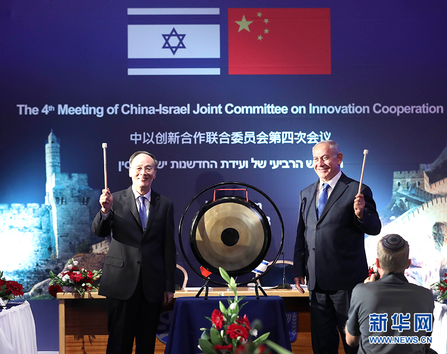 王岐山與內(nèi)塔尼亞胡共同主持召開中以創(chuàng)新合作聯(lián)委會第四次會議。王岐山表示,中以創(chuàng)新合作理念契合、優(yōu)勢互補、潛力巨大、前景廣闊。近年來,兩國在基礎(chǔ)科學(xué)、現(xiàn)代農(nóng)業(yè)、健康醫(yī)療、能源等領(lǐng)域的合作成果豐碩。創(chuàng)新永遠(yuǎn)在路上,創(chuàng)新合作機制也永遠(yuǎn)在路上。希望中以雙方深入總結(jié)以往合作的成績和經(jīng)驗,規(guī)劃未來合作的方向和路徑,進(jìn)一步擴大交流往來,營造有利環(huán)境,在不斷發(fā)現(xiàn)問題、解決問題中,改進(jìn)完善聯(lián)委會機制,推動兩國創(chuàng)新合作取得更多成果。內(nèi)塔尼亞胡表示,以色列和中國都是富有創(chuàng)新精神的國家,兩國應(yīng)在已經(jīng)取得的合作成果基礎(chǔ)上,開辟新領(lǐng)域,執(zhí)行新項目,推動兩國創(chuàng)新合作更好地造福兩國人民。會議聽取了兩國有關(guān)部門對過去三年雙方在科技、經(jīng)貿(mào)、農(nóng)業(yè)、衛(wèi)生、交通等領(lǐng)域合作進(jìn)展情況的報告和對下一階段各領(lǐng)域合作的設(shè)想和建議。王岐山和內(nèi)塔尼亞胡共同簽署《中以創(chuàng)新合作行動計劃(2018-2021)》,并見證了其他7份中以合作文件的簽署。