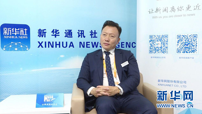 圖為通內斯食品集團中國區總裁劉東正在接受新華網專訪。 新華網發