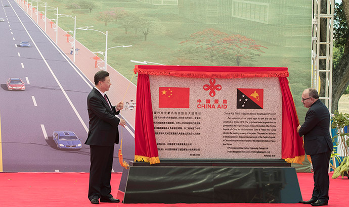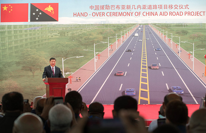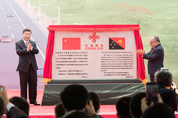 11月16日,國家主席習近平在莫爾茲比港和巴布亞新幾內亞總理奧尼爾共同出席中國援建的獨立大道移交啟用儀式。新華社記者 黃敬文 攝
