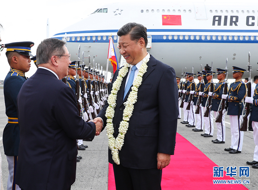 11月20日,國(guó)家主席習(xí)近平抵達(dá)馬尼拉,開(kāi)始對(duì)菲律賓共和國(guó)進(jìn)行國(guó)事訪(fǎng)問(wèn)。這是習(xí)近平在機(jī)場(chǎng)受到菲律賓政府高級(jí)官員熱情迎接。 新華社記者 謝環(huán)馳 攝
