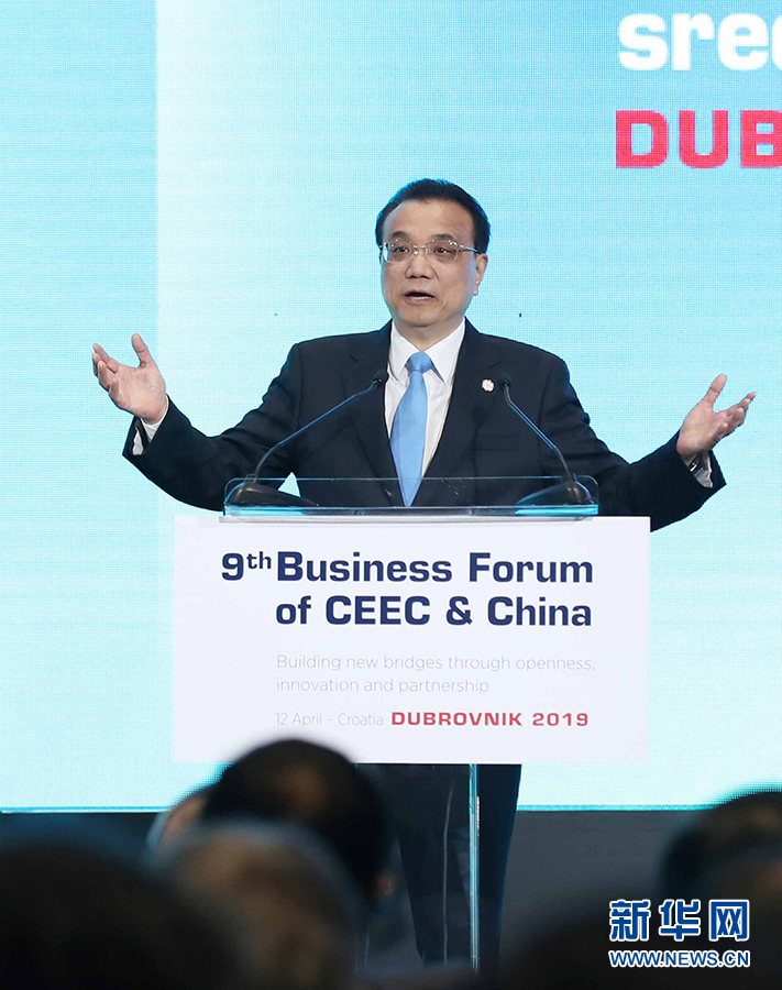 當?shù)貢r間4月12日上午,國務(wù)院總理李克強在杜布羅夫尼克與中東歐16國領(lǐng)導(dǎo)人共同出席第九屆中國-中東歐國家經(jīng)貿(mào)論壇開幕式并致辭。 新華社記者 劉衛(wèi)兵 攝