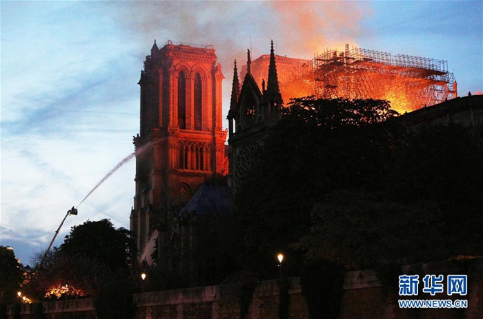 4月15日,在法國巴黎,巴黎圣母院燃起大火。位于法國首都的巴黎圣母院15日傍晚發生大火,造成巴黎圣母院塔尖倒塌,建筑損毀嚴重。目前尚無人員傷亡的報告。新華社記者 高靜 攝