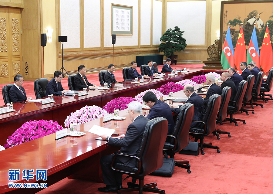 4月24日,國家主席習(xí)近平在北京人民大會堂會見阿塞拜疆總統(tǒng)阿利耶夫。 新華社記者 王曄 攝