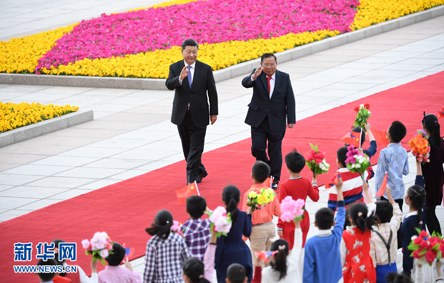 4月30日,中共中央總書記、國家主席習(xí)近平在北京同老撾人民革命黨中央總書記、國家主席本揚(yáng)舉行會(huì)談。這是會(huì)談前,習(xí)近平在人民大會(huì)堂東門外廣場(chǎng)為本揚(yáng)舉行歡迎儀式。 新華社記者 饒愛民 攝