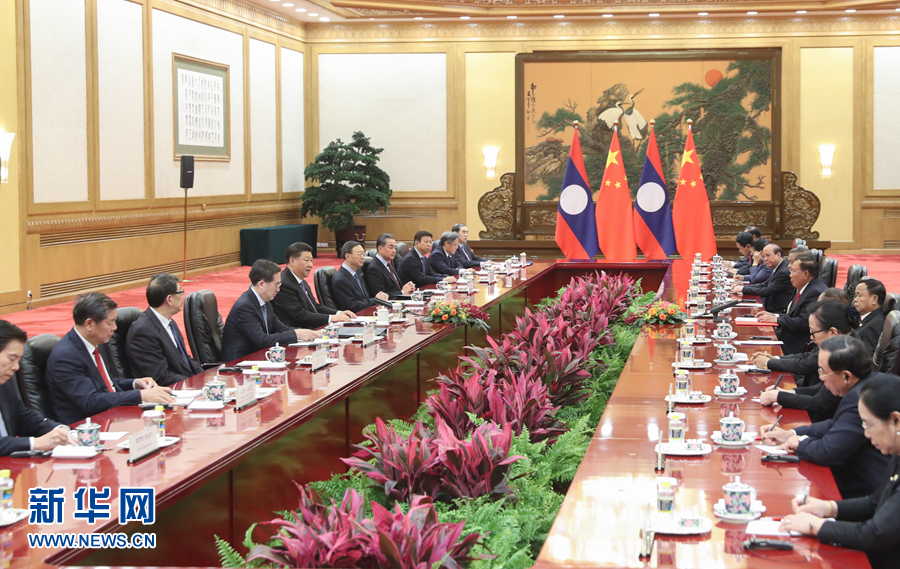 4月30日,中共中央總書記、國家主席習(xí)近平在北京同老撾人民革命黨中央總書記、國家主席本揚(yáng)舉行會(huì)談。 新華社記者 李學(xué)仁 攝