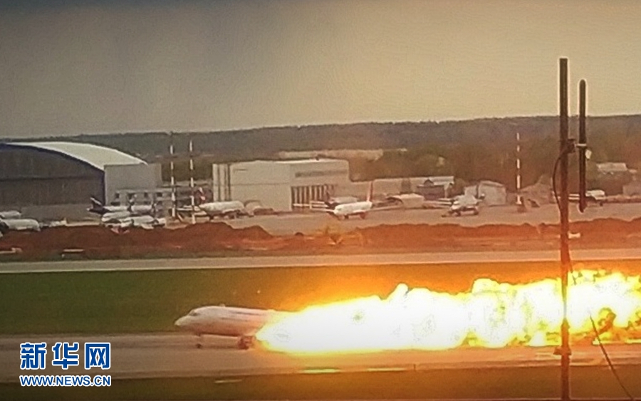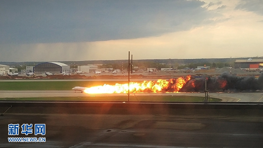 5月5日,一架客機在俄羅斯首都莫斯科謝列梅捷沃機場迫降。新華社發(謝爾蓋攝)