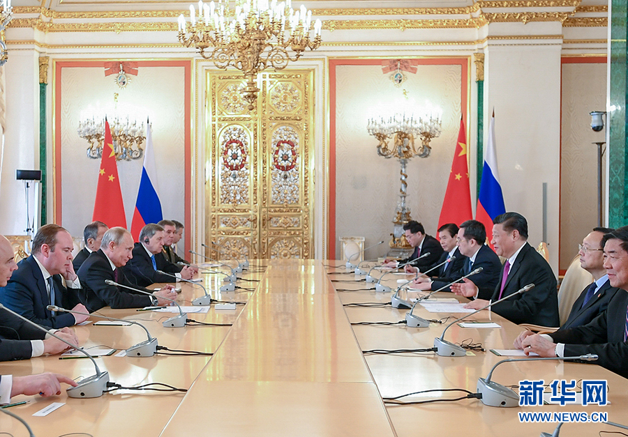 習近平指出,這是我連任國家主席后,首次對俄羅斯進行國事訪問,也是2013年以來第八次到訪俄羅斯。當前,中俄關系在高水平上持續、穩定、健康發展,處于歷史最好時期。雙方堅定支持對方維護本國核心利益,政治和戰略互信堅實牢固;積極推進各領域合作,兩國關系內生動力不斷顯現,利益交融日益深化;積極參與國際事務和全球治理,為維護世界和平穩定和國際公平正義發揮了重要建設性作用。
