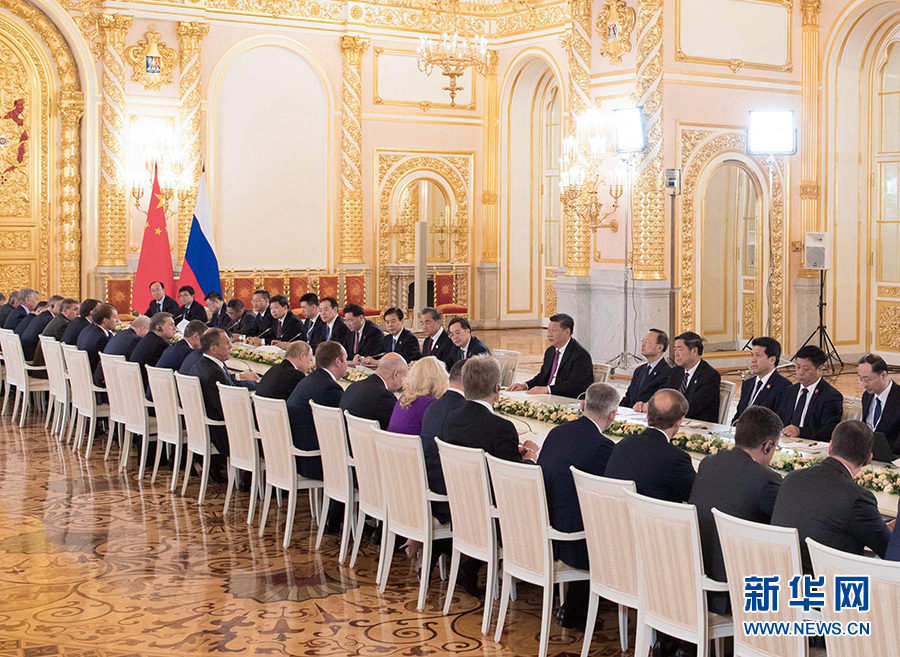 6月5日,國家主席習近平在莫斯科克里姆林宮同俄羅斯總統普京會談。 新華社記者 謝環馳 攝
