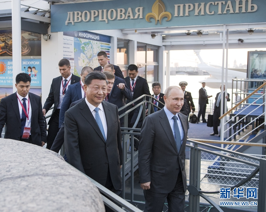 6月6日,國家主席習(xí)近平在圣彼得堡同俄羅斯總統(tǒng)普京再次舉行會晤。普京邀請習(xí)近平共同乘船游覽涅瓦河。普京歡迎習(xí)近平再次到訪他的家鄉(xiāng),并向習(xí)近平介紹圣彼得堡的風(fēng)土人情和沿途建筑。 新華社發(fā)