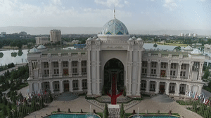 15日下午,塔吉克斯坦總統府鏡廳內,燈火通明,金碧輝煌。