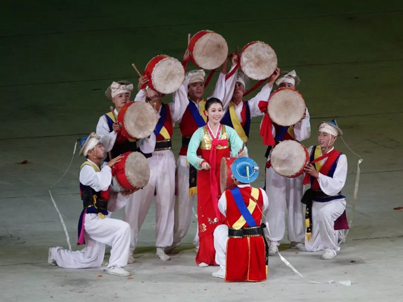 《阿里郎》由10萬名學生和文藝工作者聯袂獻藝,因其“絕世獨立”的陣容和獨創,于2007年被載入《吉尼斯世界紀錄大全》,成為外國游客在朝必看節目之一。