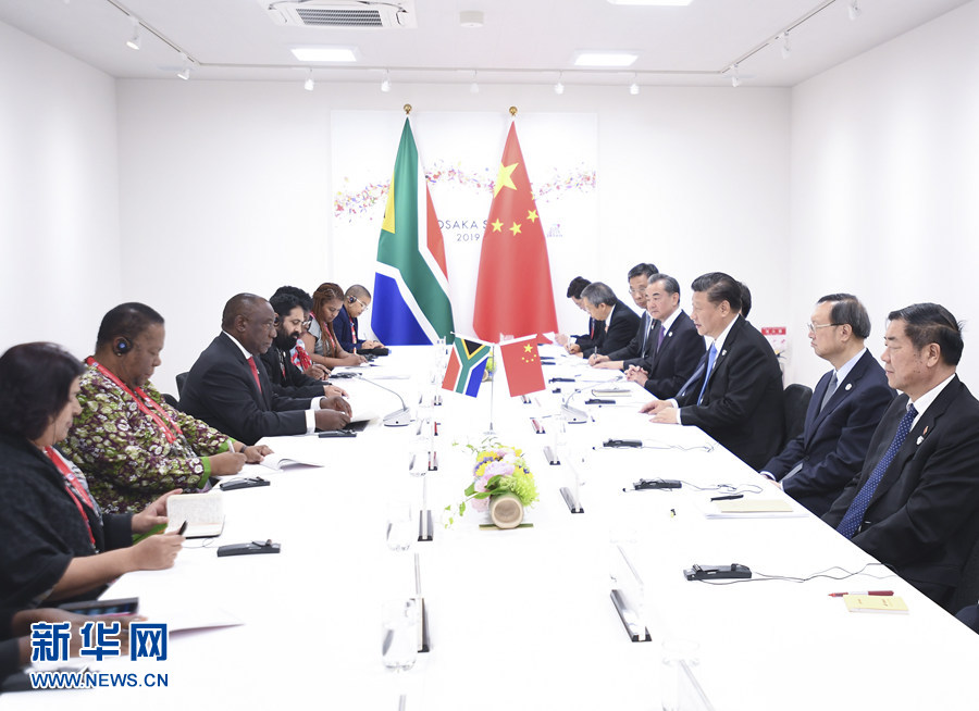 6月28日,國家主席習近平在大阪會見南非總統拉馬福薩。 新華社記者 龐興雷 攝