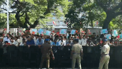習(xí)主席的車隊(duì)駛離機(jī)場前往市區(qū)沿途,眾多當(dāng)?shù)貙W(xué)生和群眾簇?fù)碓诮值纼膳裕瑩]舞中印兩國國旗,手舉習(xí)主席和莫迪總理照片,歡呼“中印友好”,表達(dá)對習(xí)主席的熱烈歡迎。