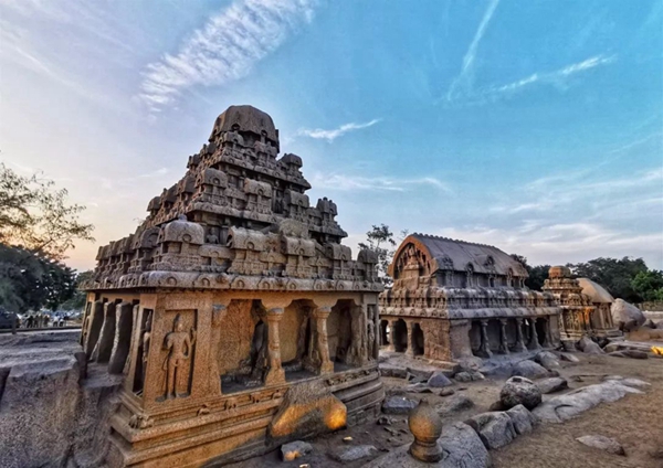 馬哈巴利普拉姆古寺廟建于公元7至8世紀(jì),由阿周那石雕、五戰(zhàn)車神廟、海岸神廟等古跡組成。