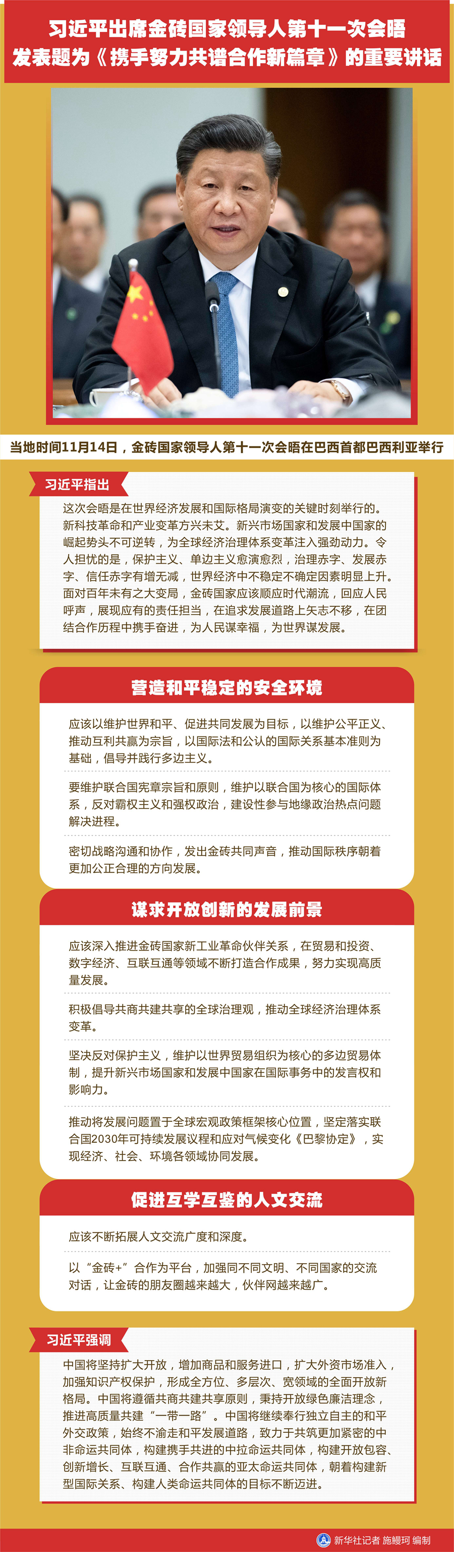 圖表:習近平出席金磚國家領導人第十一次會晤 發表題為《攜手努力共譜合作新篇章》的重要講話 新華社記者 施鰻珂 編制