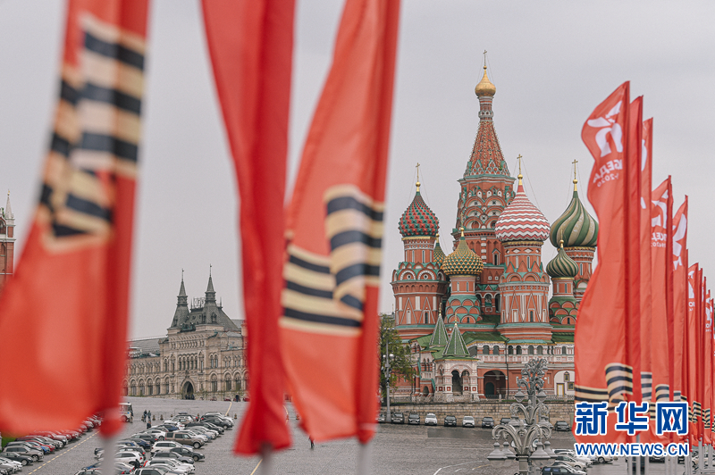 5月4日,在俄羅斯首都莫斯科,紅場附近道路裝飾著慶祝勝利日的旗幟。俄羅斯總統(tǒng)普京4月16日宣布,因新冠疫情俄將推遲原定于5月9日舉辦的俄紀念衛(wèi)國戰(zhàn)爭勝利75周年閱兵式。 為遏制新冠疫情蔓延,3月30日起莫斯科和俄多城實施居家隔離制度。 新華社發(fā)(葉甫蓋尼·西尼岑攝)