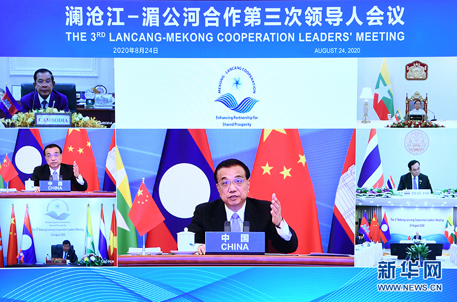 8月24日,國務院總理李克強在北京人民大會堂出席瀾滄江-湄公河合作第三次領導人視頻會議。李克強和老撾總理通倫共同主持會議。柬埔寨首相洪森、緬甸總統溫敏、泰國總理巴育、越南總理阮春福出席。 新華社記者 饒愛民 攝