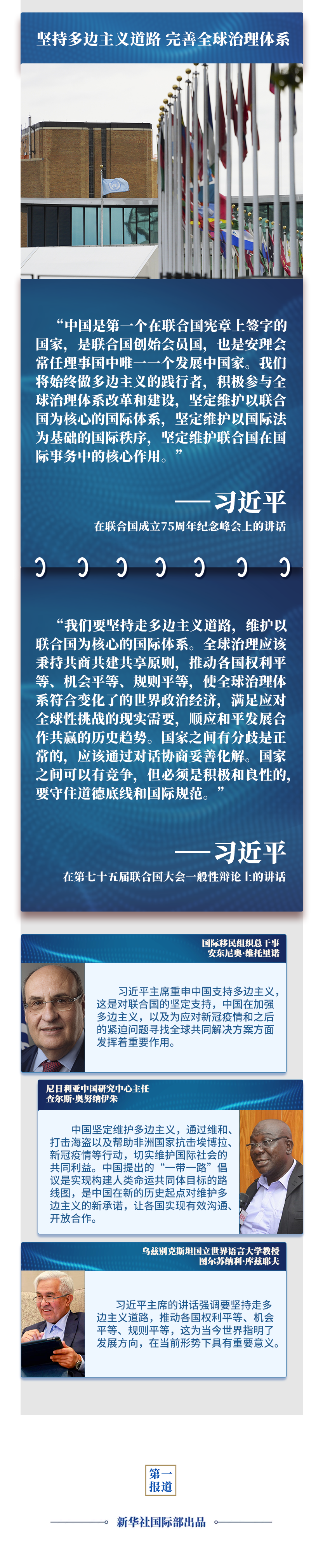 在聯合國成立75周年之際,習主席通過視頻方式,在聯合國這一多邊外交舞臺闡述關于國際秩序和人類前途命運的中國主張,為國際社會應對全球性挑戰、推動共同發展指明方向,為世界各國攜手構建人類命運共同體、共創更加美好的未來注入信心和動力——