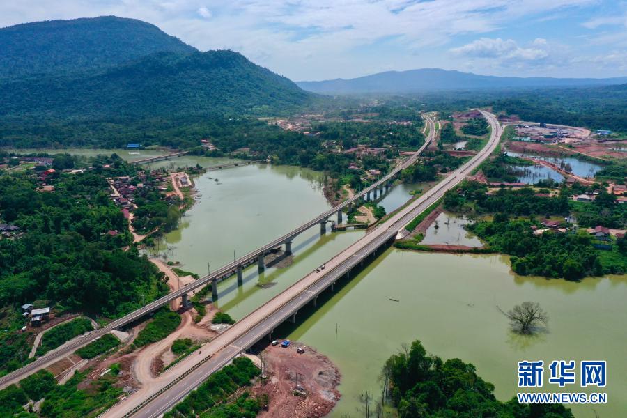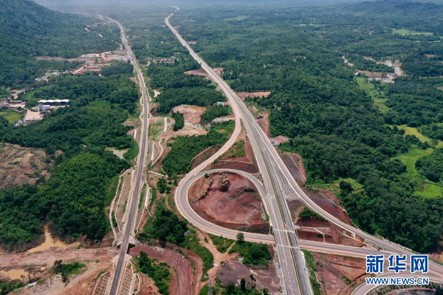 這是6月2日在老撾萬(wàn)象省航拍的建設(shè)中的萬(wàn)萬(wàn)高速公路。(無(wú)人機(jī)拍攝)新華社發(fā)(云南建投集團(tuán)供圖)