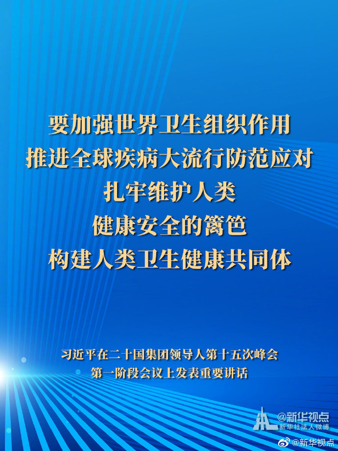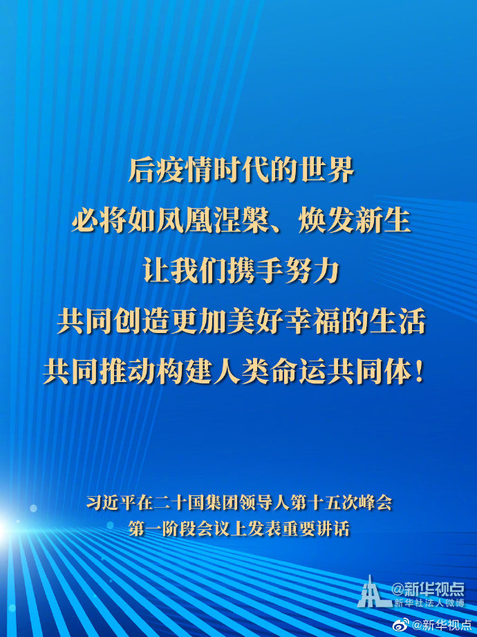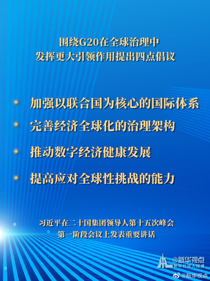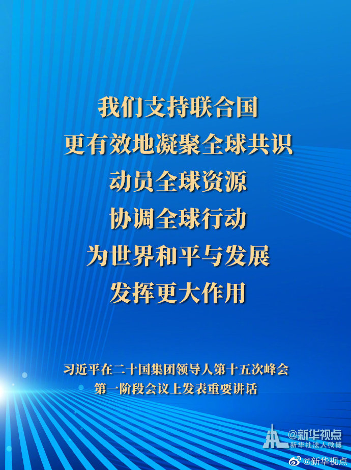 11月21日,國家主席習近平在二十國集團領導人第十五次峰會第一階段會議上發表重要講話。一起來看習主席的G20金句。