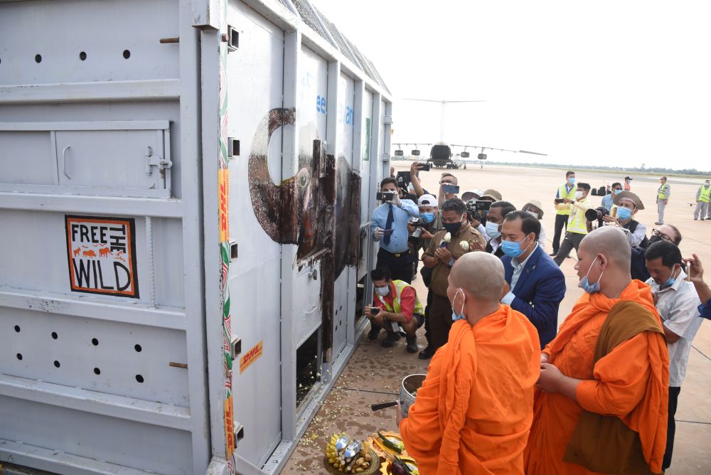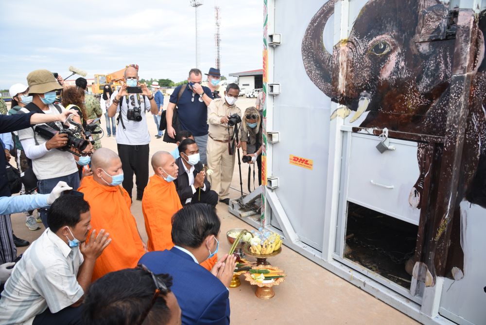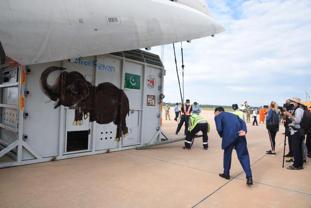 經(jīng)歷7小時飛行后,“卡萬”抵達(dá)柬埔寨東北部城市暹粒。然后它將經(jīng)歷數(shù)小時卡車運輸?shù)诌_(dá)保護(hù)區(qū)——那里有80多頭象。
