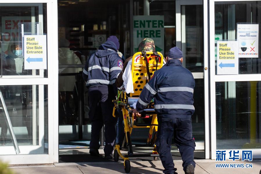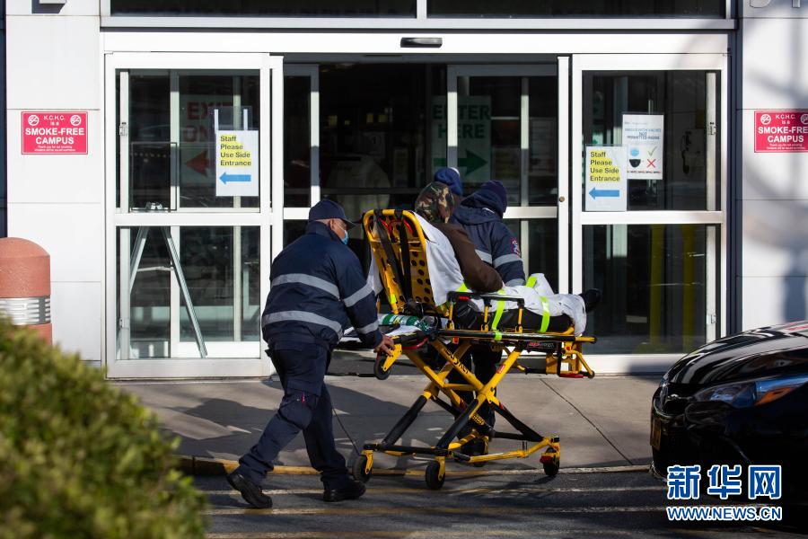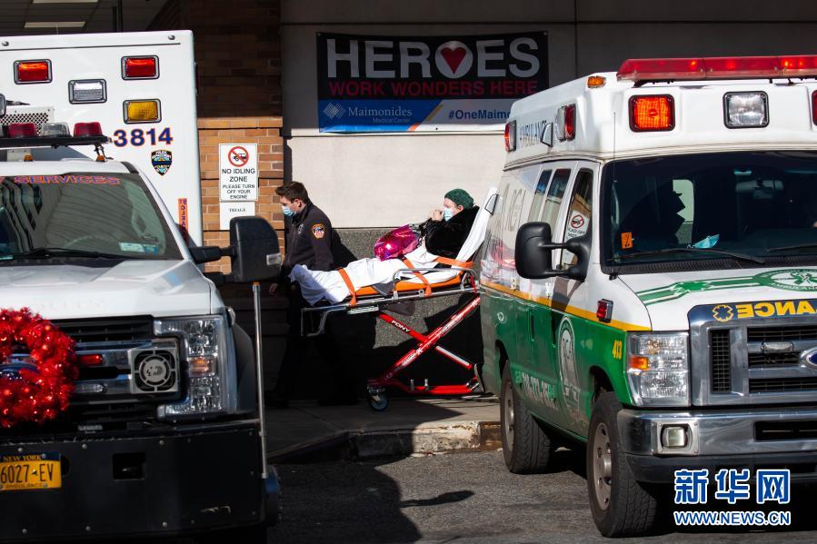 12月3日,在美國紐約,工作人員運送一名患者。新華社發(郭克 攝)