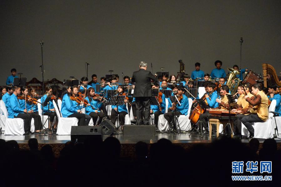 12月9日,在泰國曼谷國家大劇院,干拉耶尼音樂學院交響樂團在慶祝中泰建交45周年音樂會上演奏。新華社發(拉亨攝)