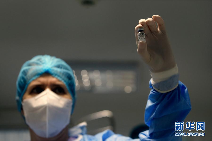 12月27日,在羅馬尼亞首都布加勒斯特一家傳染病醫院,醫務人員向媒體展示新冠疫苗。