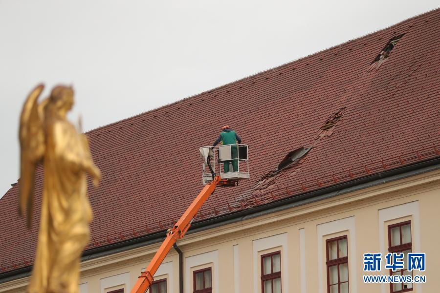 12月29日,在克羅地亞首都薩格勒布,一名工人檢查因地震損壞的房頂。新華社發(Pixsell圖片社 斯特魯尼奇攝)