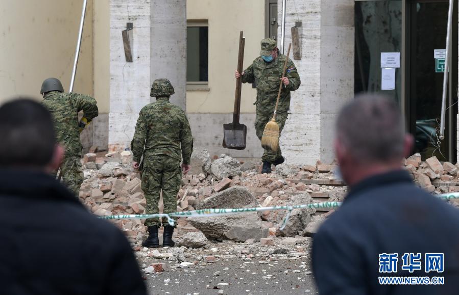 12月29日,士兵在克羅地亞首都薩格勒布清理震后廢墟。新華社發(Pixsell圖片社 西穆諾維奇攝)