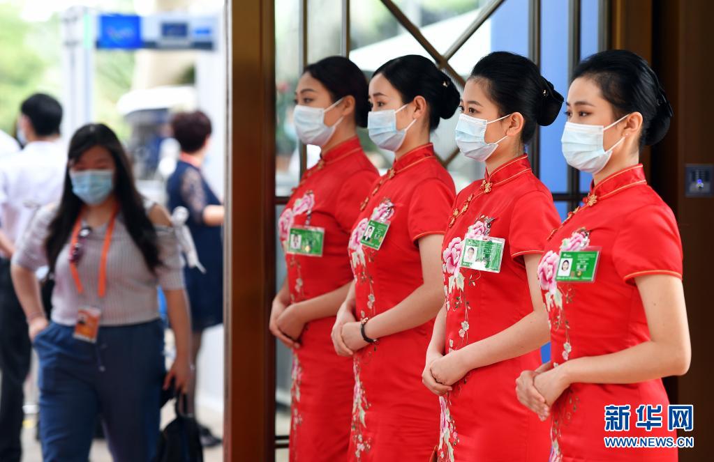 4月18日,志愿者在博鰲亞洲論壇大酒店門前迎接參會人員。